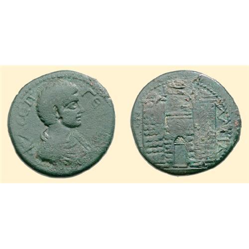 Geta as Caesar, 198- 09 AD. 5 Assaria (12.58 g). <SPAN STYLE=`FONT-SIZE:10.0PT;FONT-FAMILY:SYMBOL;COLOR:#333333`>K L </SPAN>C<SPAN STYLE=`FONT-SIZE:10.0PT;FONT-FAMILY:SYMBOL;COLOR:#333333`>EP - GETA</SPAN>C, draped bust of Geta right / <SPAN STYLE=`FONT-SIZE:10.0PT;FONT-FAMILY:SYMBOL;COLOR:#333333`>KAL-LATIA/NWN</SPAN>, city gate of Kallatis. AMNG I/1, 323; BMC 23, 11; SNG Stancomb -.