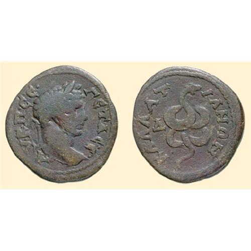 4 Assaria (7.89 g). <SPAN STYLE=`FONT-SIZE:10.0PT;FONT-FAMILY:SYMBOL;COLOR:#333333`>AU K P </SPAN>C<SPAN STYLE=`FONT-SIZE:10.0PT;FONT-FAMILY:SYMBOL;COLOR:#333333`>E - GETA</SPAN>C C, laureate head of Geta right / <SPAN STYLE=`FONT-SIZE:10.0PT;FONT-FAMILY:SYMBOL;COLOR:#333333`>KALLAT-IANWN / D</SPAN>, coiled snake. AMNG I/1, - ; BMC -