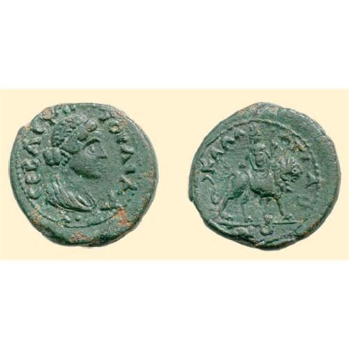 Julia Domna, wife of Septimius Severus, 193-217 AD. 3 Assaria (5.03 g). <SPAN STYLE=`FONT-SIZE:10.0PT;FONT-FAMILY:SYMBOL;COLOR:#333333`>IOLIA AGOU - </SPAN>C<SPAN STYLE=`FONT-SIZE:10.0PT;FONT-FAMILY:SYMBOL;COLOR:#333333`>EBA</SPAN>C<SPAN STYLE=`FONT-SIZE:10.0PT;FONT-FAMILY:SYMBOL;COLOR:#333333`>TH</SPAN>, draped bust of Julia Domna right / <SPAN STYLE=`FONT-SIZE:10.0PT;FONT-FAMILY:SYMBOL;COLOR:#333333`>KALL-ATIAN/WN</SPAN>, Cybele riding lion right. AMNG I/1, 313; BMC 23, 10; SNG Stancomb -.