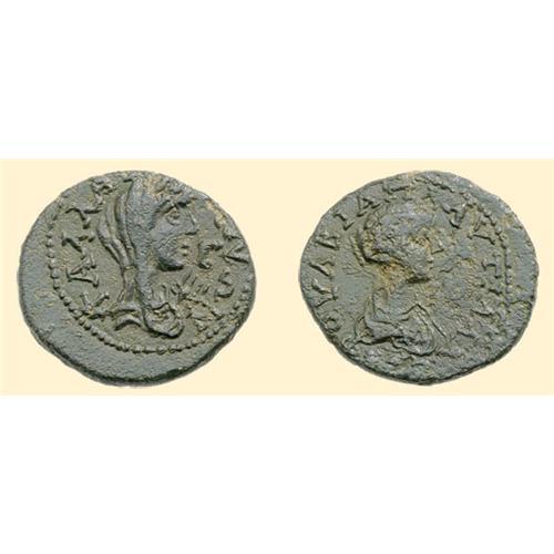 3 Assaria (6.28 g). <SPAN STYLE=`FONT-SIZE:10.0PT;FONT-FAMILY:SYMBOL;COLOR:#333333`>FOULBIA PLAUTILA </SPAN>C<SPAN STYLE=`FONT-SIZE:10.0PT;FONT-FAMILY:SYMBOL;COLOR:#333333`>EB</SPAN>, draped bust of Plautilla right / <SPAN STYLE=`FONT-SIZE:10.0PT;FONT-FAMILY:SYMBOL;COLOR:#333333`>KALLA[-TIA]NWN</SPAN>, veiled bust of Demeter right. AMNG I/1, - ; BMC -.