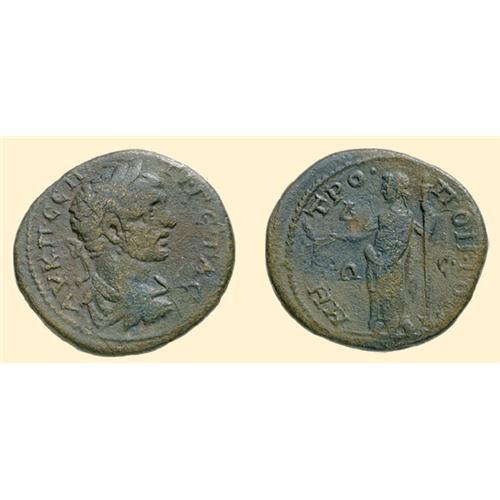 4 Assaria (9.90 g). <SPAN STYLE=`FONT-SIZE:10.0PT;FONT-FAMILY:SYMBOL;COLOR:#333333`>AU K </SPAN>C<SPAN STYLE=`FONT-SIZE:10.0PT;FONT-FAMILY:SYMBOL;COLOR:#333333`>EP-TI GETA</SPAN>C, laureate and draped bust of Geta right / <SPAN STYLE=`FONT-SIZE:10.0PT;FONT-FAMILY:SYMBOL;COLOR:#333333`>MH-TRO-PO TOE/W-</SPAN>C<span style=`font-size:10.0pt;font-family:Symbol;color:#333333`> / D</span>, Demeter standing left, with torch and blades of wheat. AMNG I/2, 2994; BMC 58, 31.