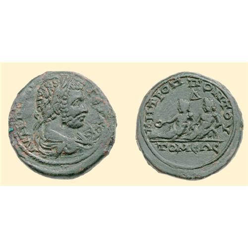 4 Assaria (13.92 g). <SPAN STYLE=`FONT-SIZE:10.0PT;FONT-FAMILY:SYMBOL;COLOR:#333333`>AUT K P </SPAN>C<SPAN STYLE=`FONT-SIZE:10.0PT;FONT-FAMILY:SYMBOL;COLOR:#333333`>EP - GETA</SPAN>C<span style=`font-size:10.0pt;font-family:Symbol;color:#333333`> AU</span>, laureate draped and cuirassed bust of Geta right / <SPAN STYLE=`FONT-SIZE:10.0PT;FONT-FAMILY:SYMBOL;COLOR:#333333`>MHTROP PONTOU / TOMEW</SPAN>C<span style=`font-size:10.0pt;font-family:Symbol;color:#333333`> / D</span>, the two Dioscurii reclining left. AMNG I/2, 3032; BMC -.