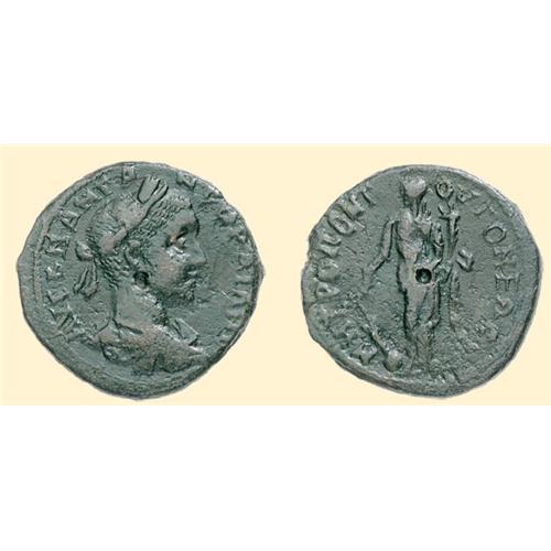 4 Assaria (10.18 g). <SPAN STYLE=`FONT-SIZE:10.0PT;FONT-FAMILY:SYMBOL;COLOR:#333333`>AUT K M ANTW-N GORDIANO</SPAN>C, laureate draped and cuirassed bust of Gordian III right / <SPAN STYLE=`FONT-SIZE:10.0PT;FONT-FAMILY:SYMBOL;COLOR:#333333`>MHTRO PONT-OU TOME/W</SPAN>C<span style=`font-size:10.0pt;font-family:Symbol;color:#333333`> / D</span>, Tyche holding cornucopia and rudder. AMNG I/2, 3474; BMC -.