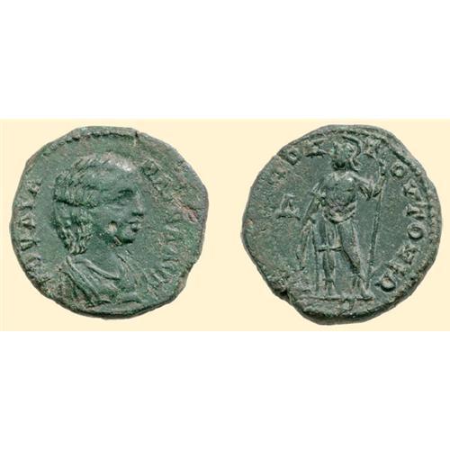 Julia Maesa, grandmother of Elagabalus, 218-224 AD. 4 Assaria (10.14 g). <SPAN STYLE=`FONT-SIZE:10.0PT;FONT-FAMILY:SYMBOL;COLOR:#333333`>IOULIA - MAI</SPAN>C<SPAN STYLE=`FONT-SIZE:10.0PT;FONT-FAMILY:SYMBOL;COLOR:#333333`>A AUG</SPAN>, draped bust of Julia Maesa right / <span style=`font-size:10.0pt;font-family:Symbol;color:#333333`>[MHTROP] PON-TOU TOMEW</span>C<span style=`font-size:10.0pt;font-family:Symbol;color:#333333`> / D</span>, Mars standing left, with lance and shield. AMNG I/2, - ; BMC - ; SNG Stancomb -.