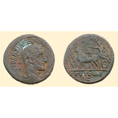 4 Assaria (8.80 g). <SPAN STYLE=`FONT-SIZE:10.0PT;FONT-FAMILY:SYMBOL;COLOR:#333333`>AUT MAXIMEINO</SPAN>C<span style=`font-size:10.0pt;font-family:Symbol;color:#333333`> EU</span>C<SPAN STYLE=`FONT-SIZE:10.0PT;FONT-FAMILY:SYMBOL;COLOR:#333333`>EBH</SPAN>C<span style=`font-size:10.0pt;font-family:Symbol;color:#333333`> AUG</span>, laureate draped and cuirassed bust of Maximinus I right / <SPAN STYLE=`FONT-SIZE:10.0PT;FONT-FAMILY:SYMBOL;COLOR:#333333`>MHTROP PON/TOU TOME/W</SPAN>C<span style=`font-size:10.0pt;font-family:Symbol;color:#333333`> / D</span>, two wheeled chariot pulled by bulls, driven by a woman, with a man standing and another one seated towards the rear. AMNG I/2, 3326; BMC 60, 46; SNG Stancomb -.