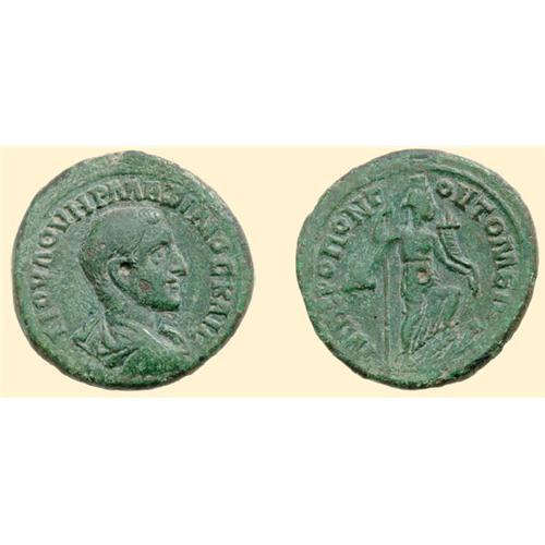 4 Assaria (10.61 g). <SPAN STYLE=`FONT-SIZE:10.0PT;FONT-FAMILY:SYMBOL;COLOR:#333333`>G IOUL OUHR MAXIMO</SPAN>C<span style=`font-size:10.0pt;font-family:Symbol;color:#333333`> KAI</span>C, draped cuirassed bust of Maximus right / <SPAN STYLE=`FONT-SIZE:10.0PT;FONT-FAMILY:SYMBOL;COLOR:#333333`>MHTRO PONT-OU TOMEW</SPAN>C<span style=`font-size:10.0pt;font-family:Symbol;color:#333333`> / D</span>, Tyche standing right, holding cornucopia, her foot on personification of Pontos. AMNG I/2, 3351; BMC 61, 48.