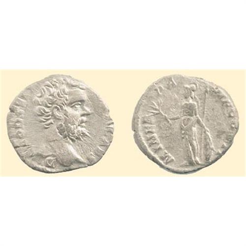 AR Denarius (2.71 g). P CLOD SE..., bust of Clodius Albinus right / MINER PA[CIF COS II], Minerva standing left, holding branch and shield. C. 48; RIC 7.