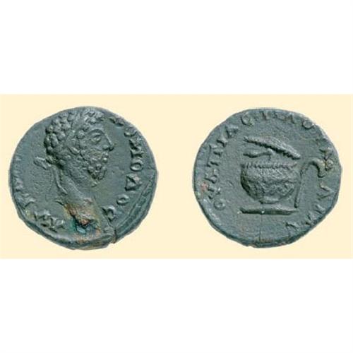 AE (4.04 g) Pautalia, Thrace. <SPAN STYLE=`FONT-SIZE:10.0PT;FONT-FAMILY:SYMBOL;COLOR:#333333`>AU KAI - KOMODO</SPAN>C, laureate head of Commodus right / <SPAN STYLE=`FONT-SIZE:10.0PT;FONT-FAMILY:SYMBOL;COLOR:#333333`>OULPIA</SPAN>C<span style=`font-size:10.0pt;font-family:Symbol;color:#333333`> PAUTALIA</span>C, cista mistica with snakes and lituus. Ruzicka -.