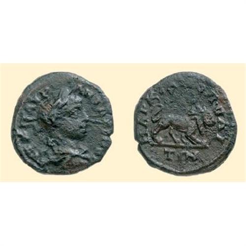 AE 16 (2.75 g). Marcianopolis, Moesia Inferior. <SPAN STYLE=`FONT-SIZE:10.0PT;FONT-FAMILY:SYMBOL;COLOR:#333333`>AUT K M AUR - ANTWNEINO</SPAN>C, laureate draped bust of Elagabalus right / <SPAN STYLE=`FONT-SIZE:10.0PT;FONT-FAMILY:SYMBOL;COLOR:#333333`>MARKIANOPOLI/TWN</SPAN>, lion striding right. AMNGI/1, 914.