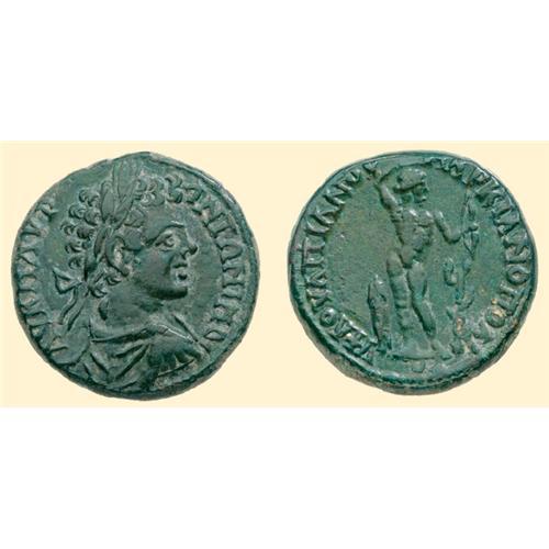 AE 21 (12.53 g). Marcianopolis, Moesia Inferior. <SPAN STYLE=`FONT-SIZE:10.0PT;FONT-FAMILY:SYMBOL;COLOR:#333333`>AU K M AUR - ANTWNINO</SPAN>, laureate draped bust of Elagabalus right / <SPAN STYLE=`FONT-SIZE:10.0PT;FONT-FAMILY:SYMBOL;COLOR:#333333`>U FL OULPIANOU - MARKIANOPOLITWN</SPAN>, Apollo Sauroktonos facing. AMNG I/1, 611.
