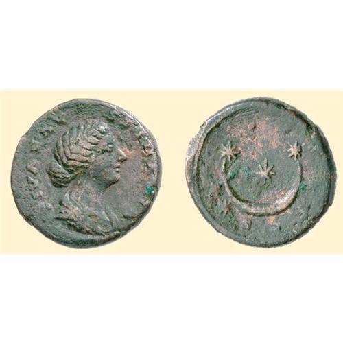 AE As (11.07 g) 176-180. , 176-180 AD. DIVA FAV-STINA PIA, draped bust of Faustina Junior right / S-C, lunar crescent and seven stars. C. 213; RIC 1714.