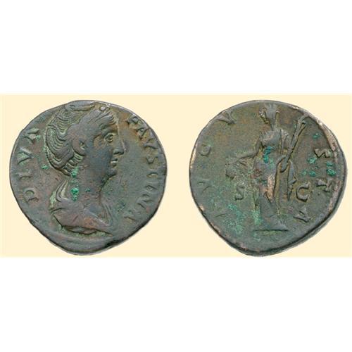 AE Sestertius (21.96 g). After 141 AD. DIVA - FAVSTINA, diademed and draped bust of Faustina Senior right / AVGV-STA / S - C, Ceres standing left, holding two blades of wheat and a torch. C. 91; RIC 163, 1120.