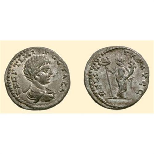 AR Denarius (3.89 g). Laodicea, 198-210 AD. L SEPTIMVS GETA CA (sic), draped bust right / FELICI-TAS TEMPOR, Felicitas standing left, holding caduceus and cornucopiae. C. 44 var.; RIC 328, 95 var.