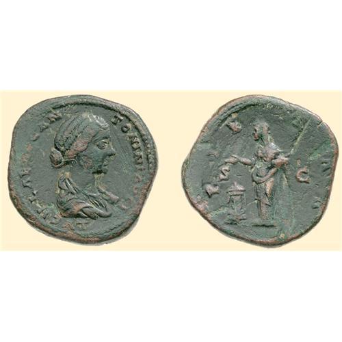 AE Sestertius (24.87 g). LVCILLAE AVG ANTONINI AVG F, draped bust of Lucilla right / PI-E-T-AS / S-C, Pietas standing left, before altar. C. 54; RIC 1756.