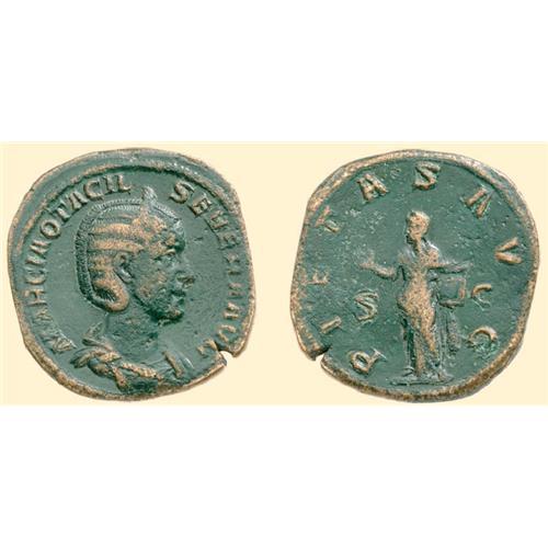 AE Sestertius (16.13 g). MARCIA OTACIL-SEVERA AVG, diademed laureate and draped bust of Otacilia Severa right / PIETAS AVG, Pietas standing left, holding box. C. 31; RIC 205 a.