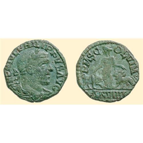 AE Sestertius (15.10 g), 251 AD, Viminacium, Moesia Superior. IMP M IVL PHILIPPVS AVG, laureate cuirassed bust of Philip I right / PMS C-OL VIM / AN VIII, Moesia standing between a bull and a lion. C. 270; Martin 2.16.