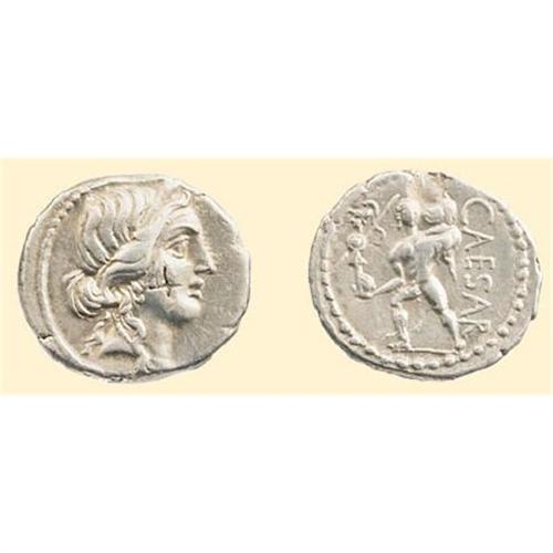 Julius Caesar, 47-46 BC. AR Denarius (3.65 g)..47-46 BC. Head of Venus right / CAESAR, Aeneas fleeing Troy, carrying his father Anchises and the Palladion. Crawford 458/1; CRI 55; Sydenham 1013.