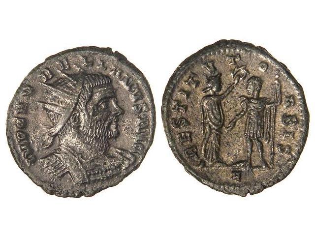 ROMAN COINS: ROMAN EMPIRE - Antoniniano. 270-275 d.C. AURELIANO. Rev.: RESTITVT. ORBIS. Mujer en pie a derecha ofreciendo una guirnalda a Aureliano. AE. C-194 var. MBC+/EBC.