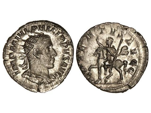 ROMAN COINS: ROMAN EMPIRE - Antoniniano. Acuñada el 244-247 d.C. FILIPO I. Rev.: ADVENTVS AVGG. Filipo a caballo a izquierda. AR. C-3. EBC-/MBC+.