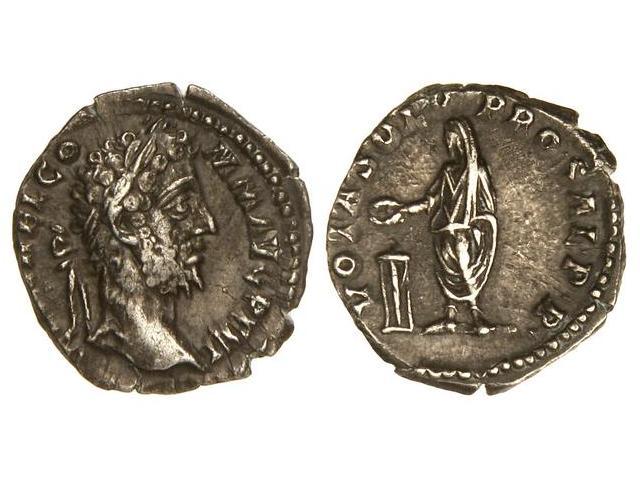 ROMAN COINS: ROMAN EMPIRE - Denario. Acuñada el 191-192 d.C. CÓMODO. Anv.: L. AEL. AVREL. COMM. AVG. P. FEL. Cabeza laureada a derecha. Rev.: VOTA SOLV. PRO SAL. P. R. Cómodo estante ceremoniando ante un altar. Pátina oscura. C-984 var. sin víctima. MBC+.