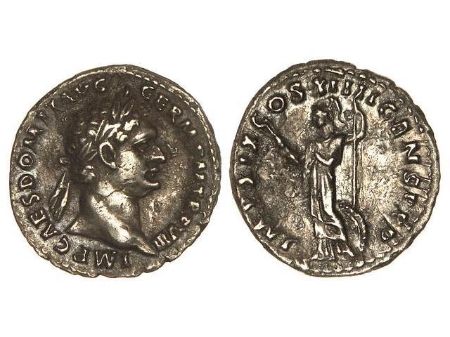 ROMAN COINS: ROMAN EMPIRE - Denario. Acuñada el 88-89 d.C. DOMICIANO. Anv.: IMP. CAES. DOMIT. AVG. GERM. P. M. TR. P. VIII. Cabeza laureada a derecha. Rev.: IMP. XIX COS. XIIII CENS. P. P. P. Minerva en pie a izquierda. (Pequeñas oxidaciones). C-251. EBC-/MBC+.