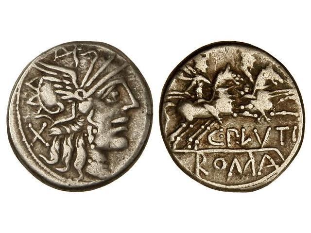 ROMAN COINS: ROMAN REPUBLIC - Denario. 121 a.C. PLUTIA-1. C. Plutius. Cal-1136; FFC-1009. MBC/MBC-.
