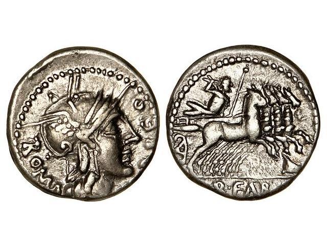 ROMAN COINS: ROMAN REPUBLIC - Denario. 124 a.C. FABIA-1. Quintus Fabius Labeo. (Ligeramente descentrada). Cal-571; FFC-697. MBC+.