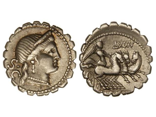 ROMAN COINS: ROMAN REPUBLIC - Denario. 79 a.C. NAEVIA-6. C. Naevius Balbus. Rev.: Victoria en triga a derecha, encima número. En exergo: C. NAE. BALB. Cal-1041; FFC-937. MBC+/MBC.
