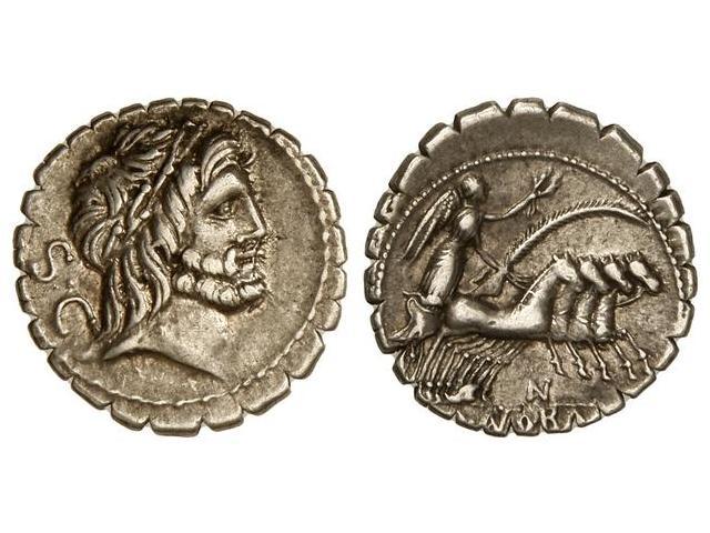 ROMAN COINS: ROMAN REPUBLIC - Denario. 83-82 a.C. ANTONIA-1. Q. Antonius Balbus. Rev.: Victoria en cuadriga a derecha, con palma y corona de laurel, debajo letra. En exergo: Q. ANTO. BALB. PR. (Reverso algo descentrado). Cal-364; FFC-157. MBC+.</B