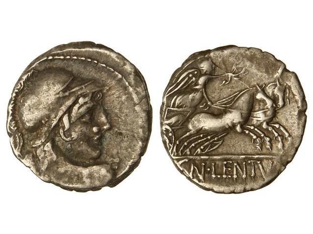 ROMAN COINS: ROMAN REPUBLIC - Denario. 88 a.C. CORNELIA-50. Cn. Cornelius Lentulus Marcellinus. Anv.: Busto de Marte a derecha, visto por la espalda. (Ligeramente descentrada en anverso). Cal-484; FFC-624. MBC.