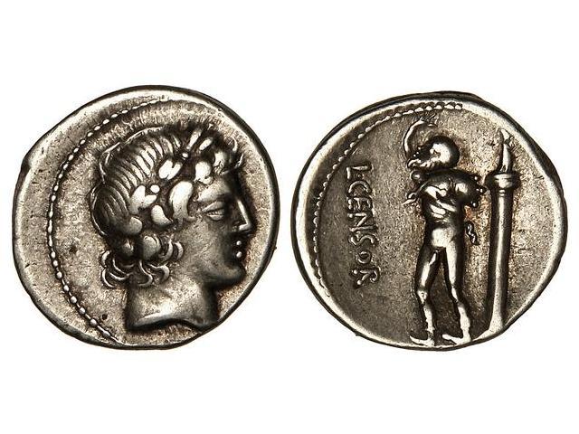 ROMAN COINS: ROMAN REPUBLIC - Denario. 88 a.C. MARCIA-24. L. Marcius Censorinus. Anv.: Cabeza laureada de Apolo a derecha. Cal-957; FFC-888. MBC+.