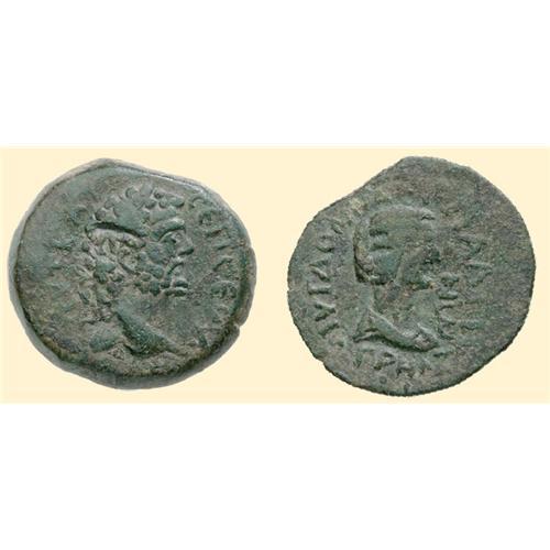 AE 29 (16.67 g). Epiphania, Cilicia. <SPAN STYLE=`FONT-SIZE:10.0PT;FONT-FAMILY:SYMBOL;COLOR:#333333`>AUT KAI - </SPAN>C<SPAN STYLE=`FONT-SIZE:10.0PT;FONT-FAMILY:SYMBOL;COLOR:#333333`>EPT - </SPAN>C<SPAN STYLE=`FONT-SIZE:10.0PT;FONT-FAMILY:SYMBOL;COLOR:#333333`>EUHR</SPAN>[...], laureate head of Septimius Severus right / <SPAN STYLE=`FONT-SIZE:10.0PT;FONT-FAMILY:SYMBOL;COLOR:#333333`>I</SPAN>V<SPAN STYLE=`FONT-SIZE:10.0PT;FONT-FAMILY:SYMBOL;COLOR:#333333`>L DOMNA </SPAN>C<SPAN STYLE=`FONT-SIZE:10.0PT;FONT-FAMILY:SYMBOL;COLOR:#333333`>EB EPIFANE/WN</SPAN>, draped bust of Julia Domna right, date below. BMC - ; SNG France 2, - ; SNG Switzerland 1, -.