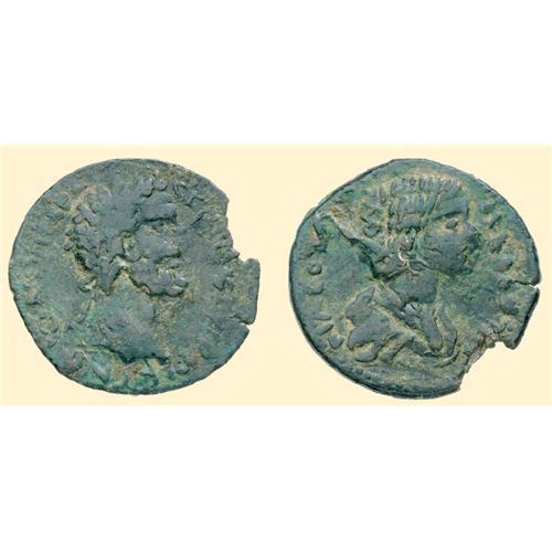 AE 30 (10.10 g). Ninica - Claudiopolis, Cilicia. Legends reworked, head of Septimius Severus right / bust of Julia Domna right. SNG France 2, - ; SNG Switzerland I, 609.