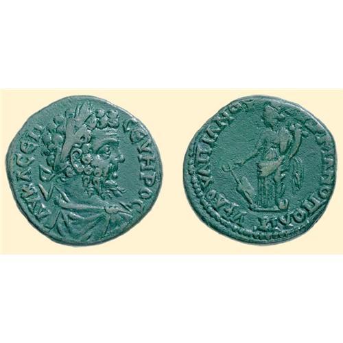 AE 4 Assaria (11.79 g). Marcianopolis, Moesia Inferior. <SPAN STYLE=`FONT-SIZE:10.0PT;FONT-FAMILY:SYMBOL;COLOR:#333333`>AU K L </SPAN>C<SPAN STYLE=`FONT-SIZE:10.0PT;FONT-FAMILY:SYMBOL;COLOR:#333333`>EP - </SPAN>C<SPAN STYLE=`FONT-SIZE:10.0PT;FONT-FAMILY:SYMBOL;COLOR:#333333`>EUHRO</SPAN>C, laureate and draped bust of Spetimius Severus right / <SPAN STYLE=`FONT-SIZE:10.0PT;FONT-FAMILY:SYMBOL;COLOR:#333333`>U FL OULPIANOU - MARKIANOPOLITWN</SPAN>, Tyche left, with rudder and cornucopiae. AMNG I/1, 582.