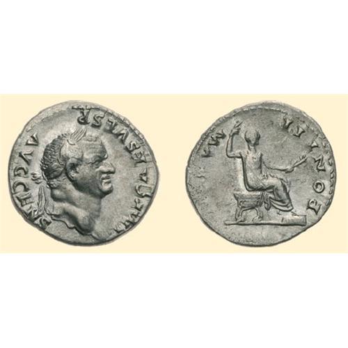AR Denarius (3.45 g). 73 AD. IMP CAES VESP - AVG CENS, laureate head right / PONTIF-MAX, Vespasian seated right. C. 387; RIC 21, 65.