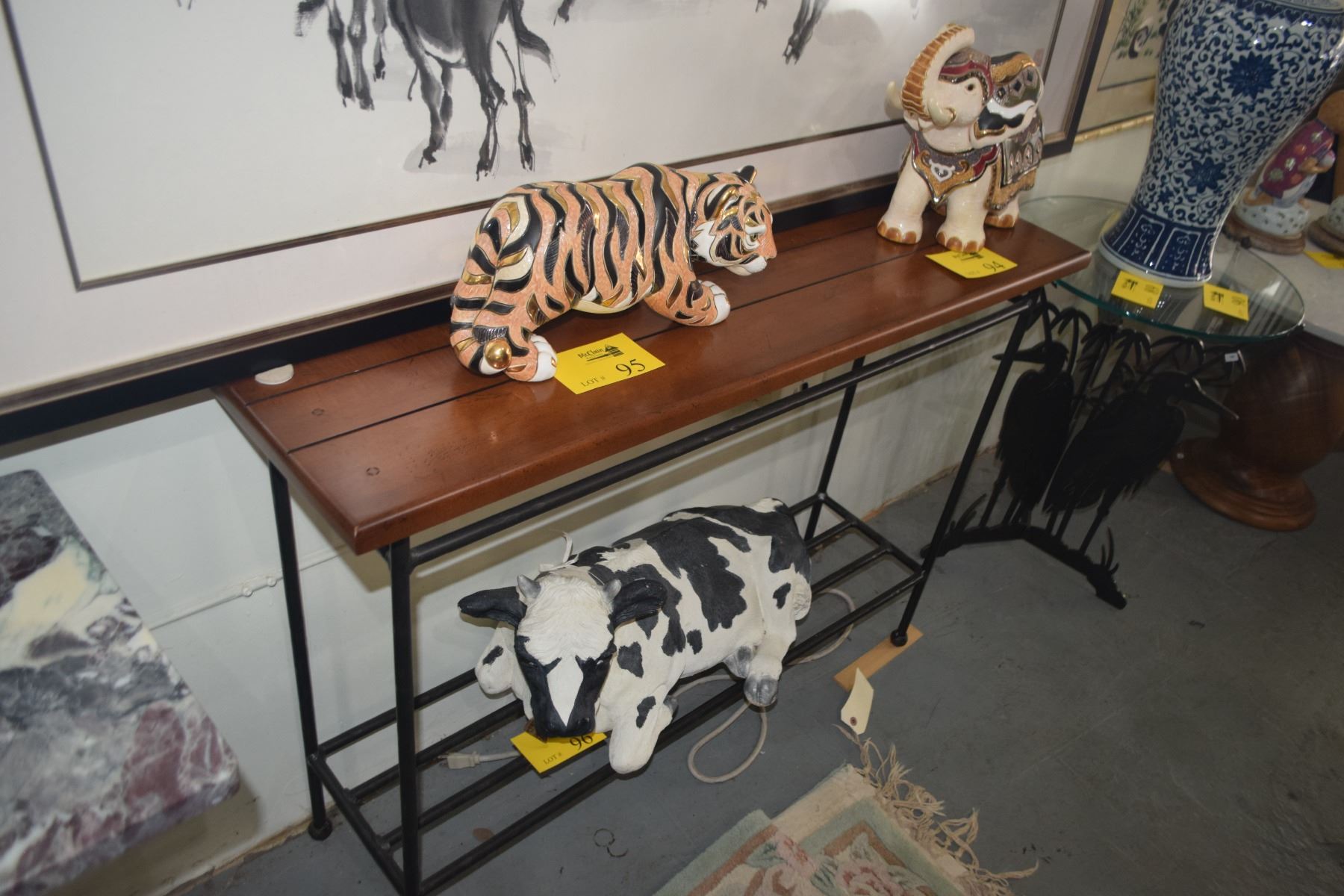 ROMAN CONSOLE TABLE W/WOODEN TOP & BLACK PAINTED METAL FRAME BY CHARLESTON FORGE (42" X 30" X 12")