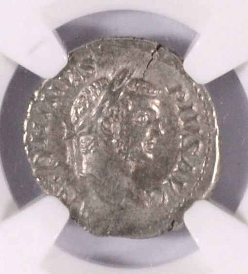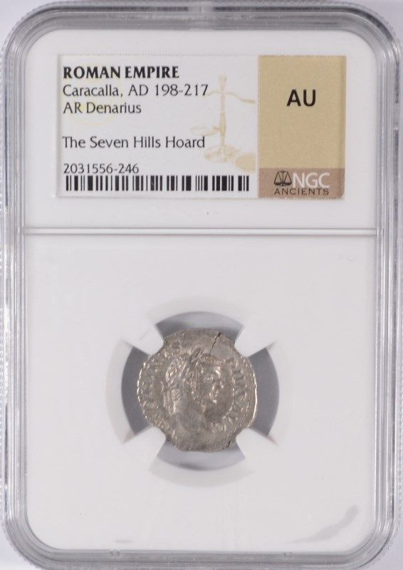 ROMAN EMPIRE ANCIENT SILVER DENARIUS, CARACALLA A.D. 198-217 NGC AU