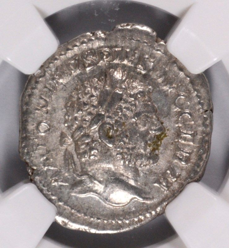 ROMAN EMPIRE ANCIENT SILVER DENARIUS, CARACALLA, A.D. 198-217 NGC CH XF RARE!!