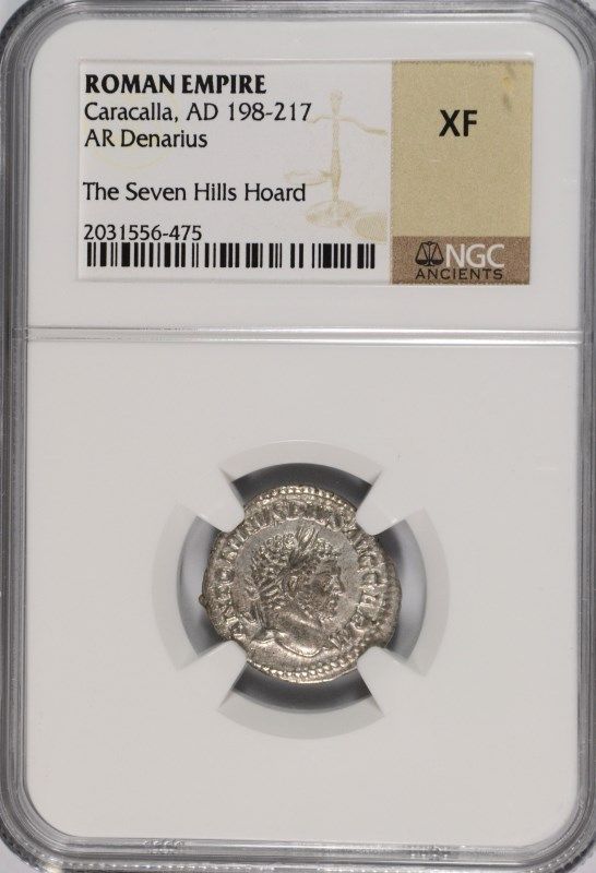 ROMAN EMPIRE ANCIENT SILVER DENARIUS, CARACALLA, A.D. 198-217 NGC XF