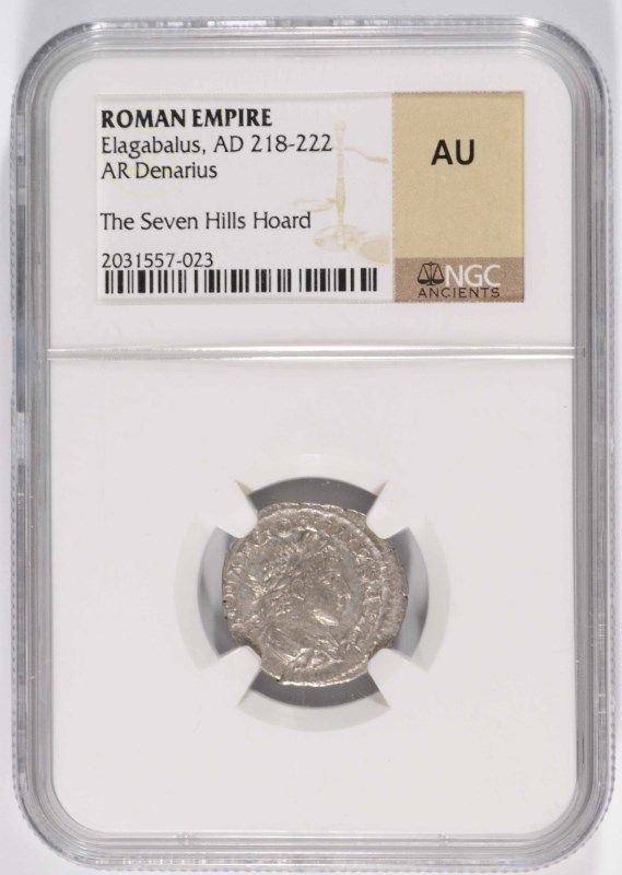 ROMAN EMPIRE ANCIENT SILVER DENARIUS, ELAGABALAS A.D. 218-22 NGC-AU , RARE!!!