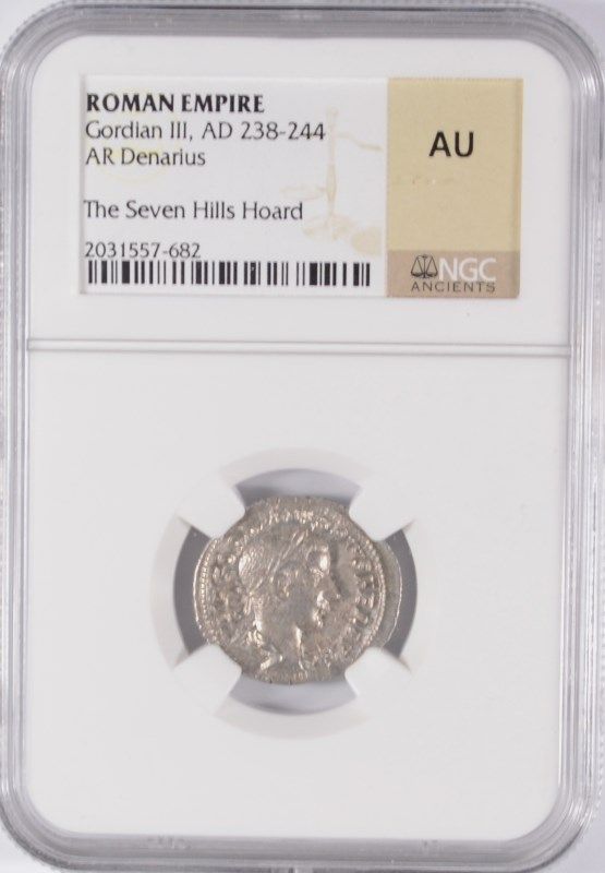 ROMAN EMPIRE ANCIENT SILVER DENARIUS, GORDIAN III A.D. 238-244, NGC AU RARE!
