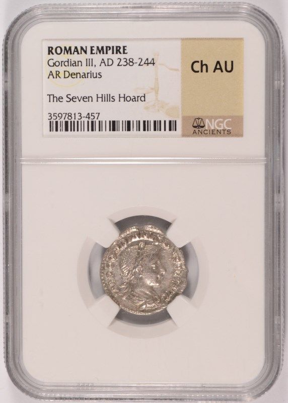 ROMAN EMPIRE ANCIENT SILVER DENARIUS, GORDIAN III A.D. 238-244, NGC CH AU RARE!