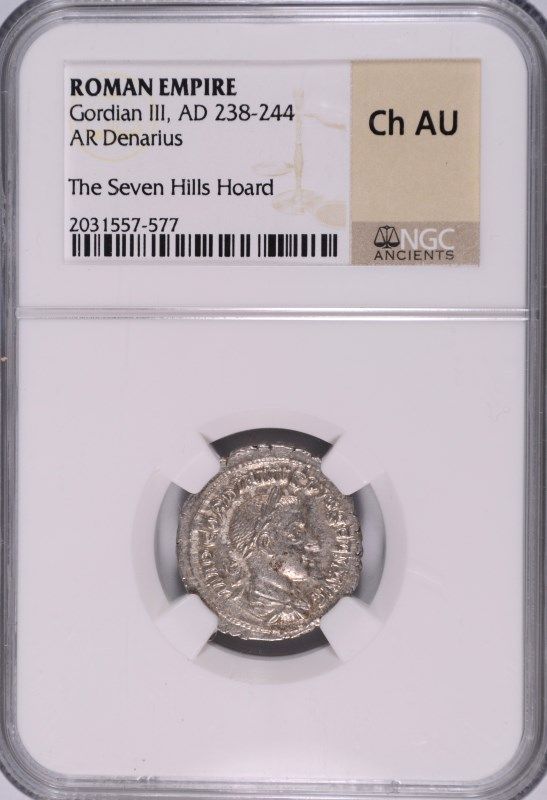ROMAN EMPIRE ANCIENT SILVER DENARIUS, GORDIAN III A.D. 238-244, NGC CH AU RARE!