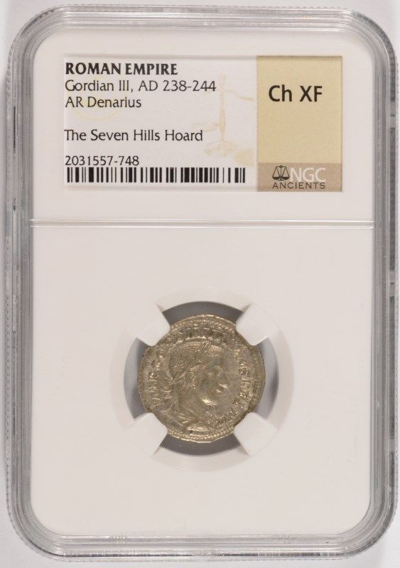 ROMAN EMPIRE ANCIENT SILVER DENARIUS, GORDIAN III A.D. 238-244, NGC CH XF RARE!