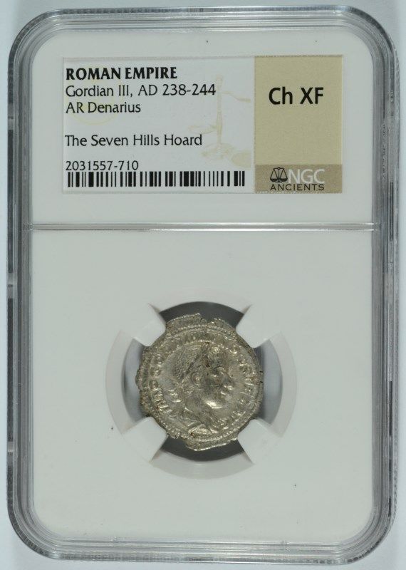 ROMAN EMPIRE ANCIENT SILVER DENARIUS, GORDIAN III A.D. 238-244, NGC CH XF RARE!
