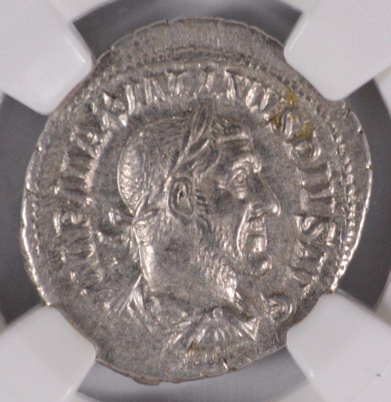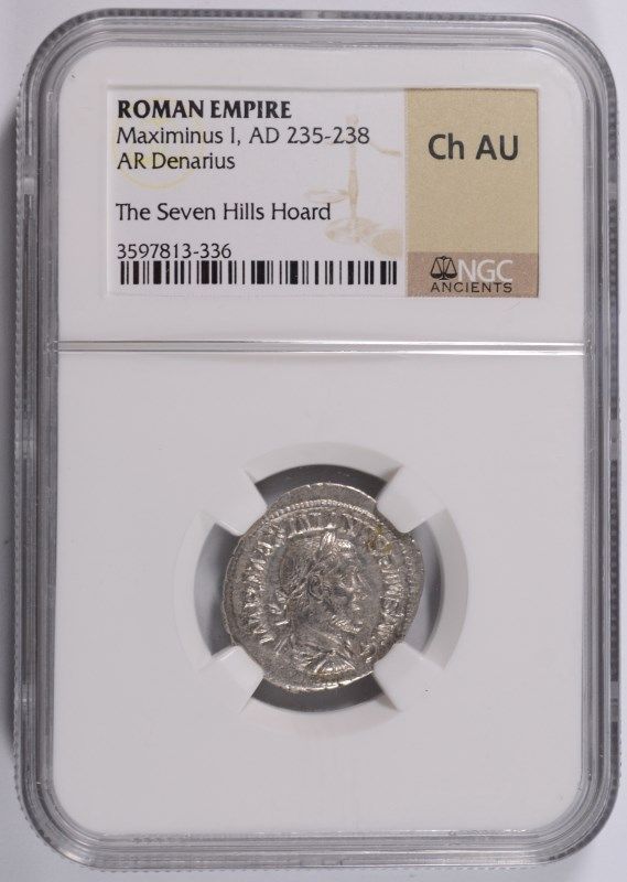 ROMAN EMPIRE ANCIENT SILVER DENARIUS, MAXIMINUS I A.D. 235-238, NGC CHOICE AU