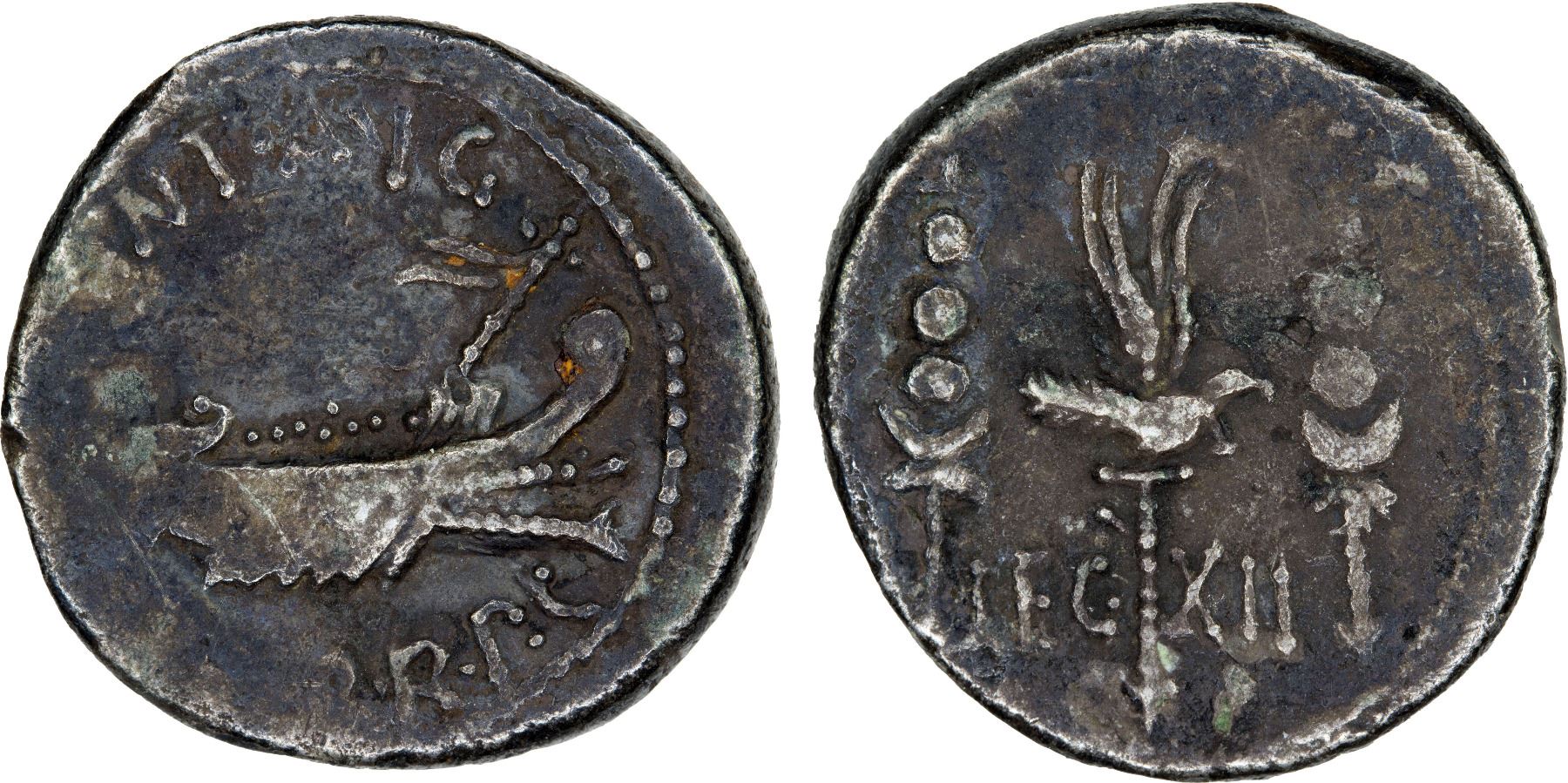 ROMAN IMPERATORIAL PERIOD: Mark Antony, as triumvir, AR denarius (3.49g), travelling military mint,