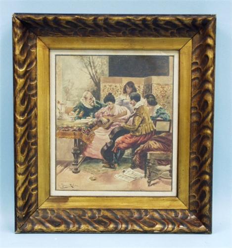 ROMAN RIBERA (1848-1935) Spanish school. "The Musicians". Watercolour on paper. Signed lower left. 13" x 11 1/4". In wood frame. Ref: Benezit, vol. 7, page 211.