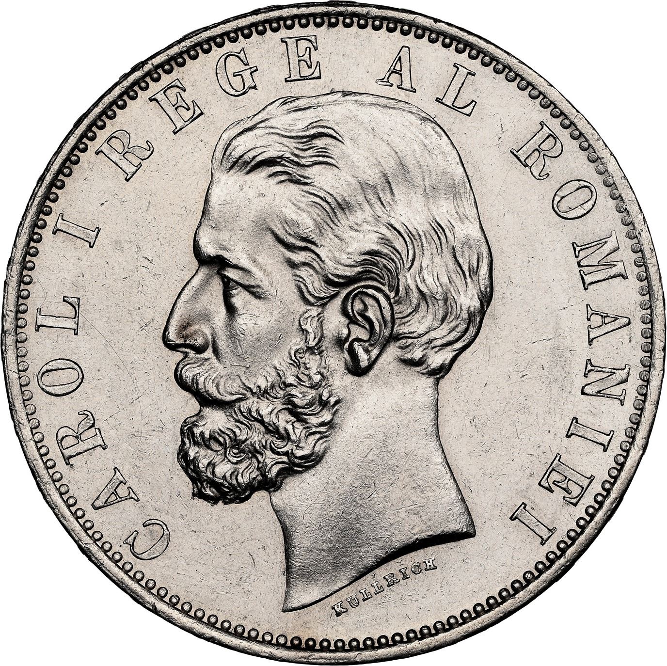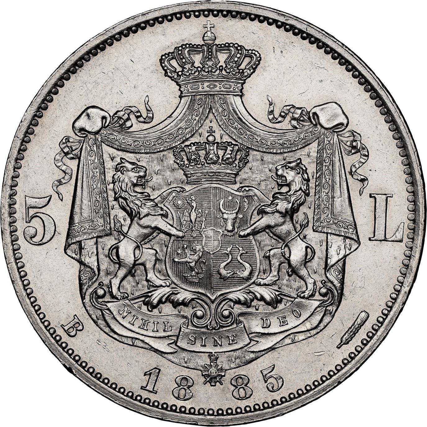 ROMANIA, Bucharest, 5 lei, Carol I, 1885-B, NGC UNC details / cleaned.