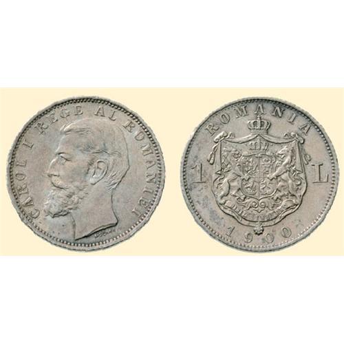 ROMANIA COINS 1 LEU 1900, silver (5.02 g), Hamburg. CAROL I R